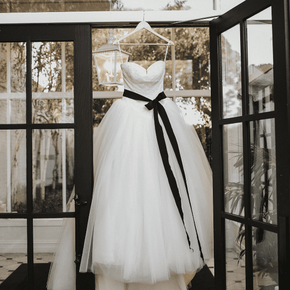 証明書(Certificate)、ブランド純正のサッシュベルト・ハンガー・ドレスカバーなどが揃っていると査定額は大幅にアップします。正規品である証明と、次の花嫁様への安心につながる重要な要素です。