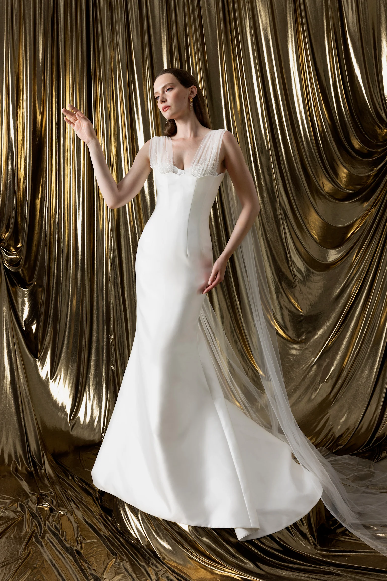 ベグムは、デザイナー ベグム・ヤルチン(Begüm Yalçın)によってトルコ・イスタンブールで設立されたブランドです。 「ラグジュアリーとフェミニニティの融合」をコンセプトに掲げ、女性らしい優雅さと気品を表現するドレスは、瞬く間に世界中の花嫁の心を掴みました。