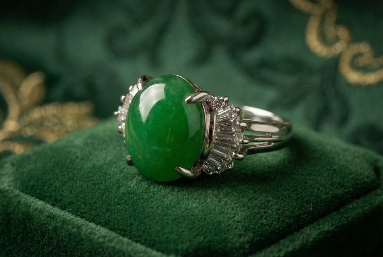 昭和期に多く見られる翡翠リングやジュエリーは、デザインの好みが分かれることがあります。ただし、石そのものの品質が高い場合には、素材評価が重視されるケースも少なくありません。