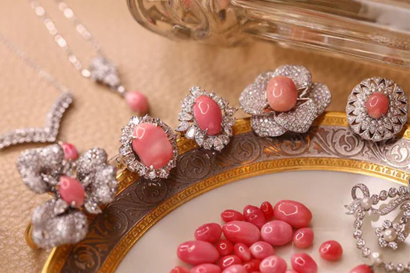 コンクパールは、他の真珠とは異なり養殖が不可能で、すべてが天然のものです。そのため、市場に流通する数が限られており、高い希少価値を持ちます。特に鮮やかなピンク色やサーモンピンク色を持ち、火炎模様(フレームパターン)がはっきりと現れるものは、特に高額で取引されます。