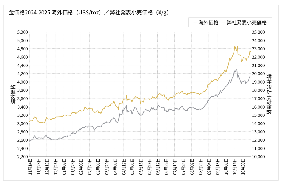 ※金価格は日々変動します。2024年に国内価格が初めて1万3,000円を突破し、2025年に入っても高値圏で推移している状況です。