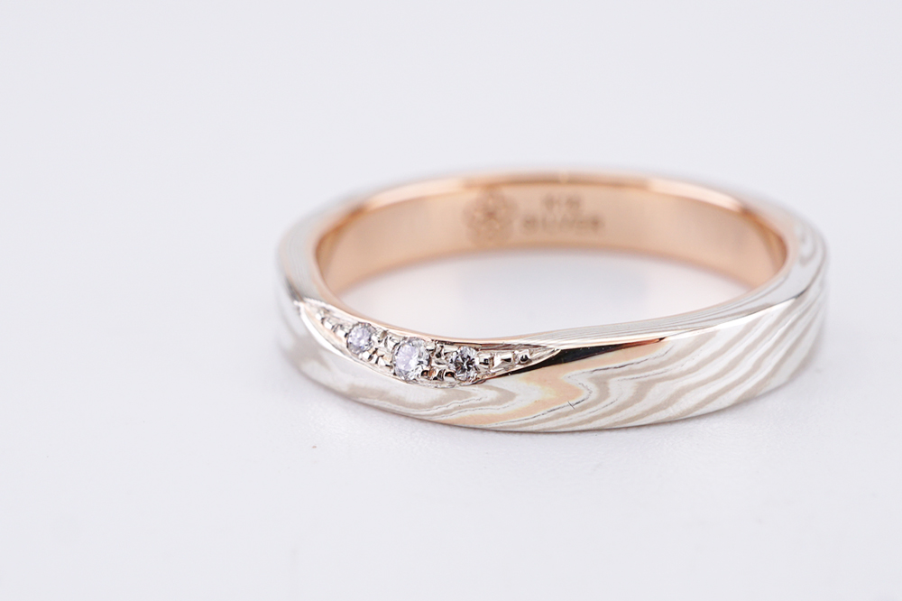 そして結婚指輪では、運命の人と赤い糸でつながるイメージをデザインしている紅ひとすじが代表的。紅ひとすじは指輪同士を合わせて赤い糸をつなげるという木目金だからこそ表現出来るデザインともいえるでしょう。そして寄り添うように重なり合うデザインの木目つむぎも人気があります。同じ木目模様は他では見られないオリジナルとなるので、「自分たちだけの指輪」となるのです。