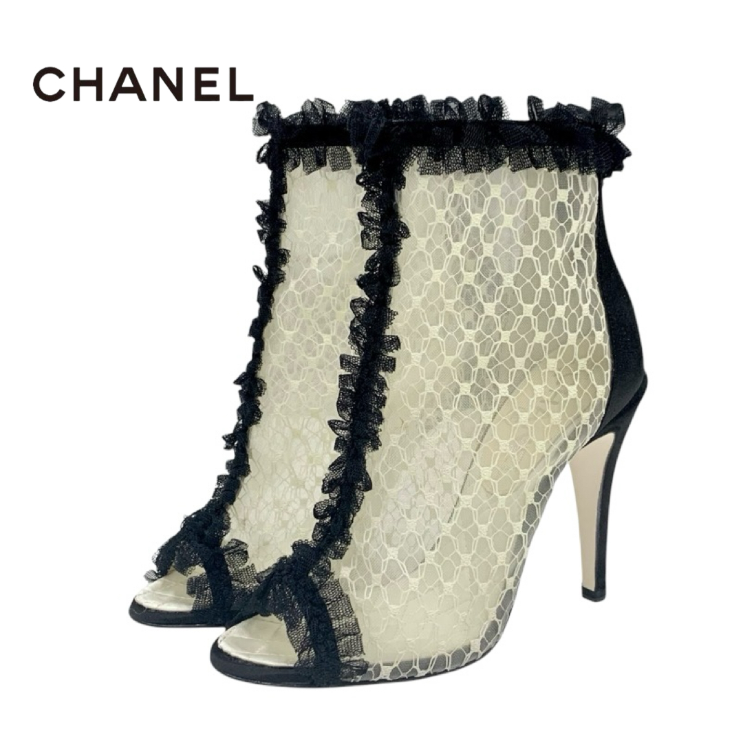 | 商品名 | シャネル メッシュ ココマーク フリル オープントゥ ショートブーツ ホワイト ブラック |