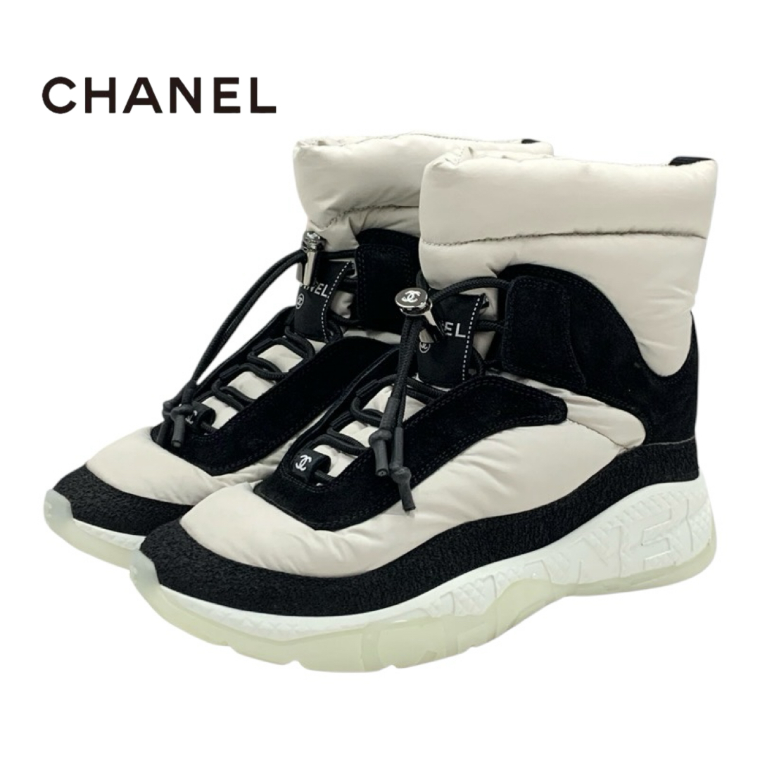 投稿記事「シャネル ナイロン スエード ココマーク ロゴ ショートブーツ グレー ブラックを買取しました!」の商品画像