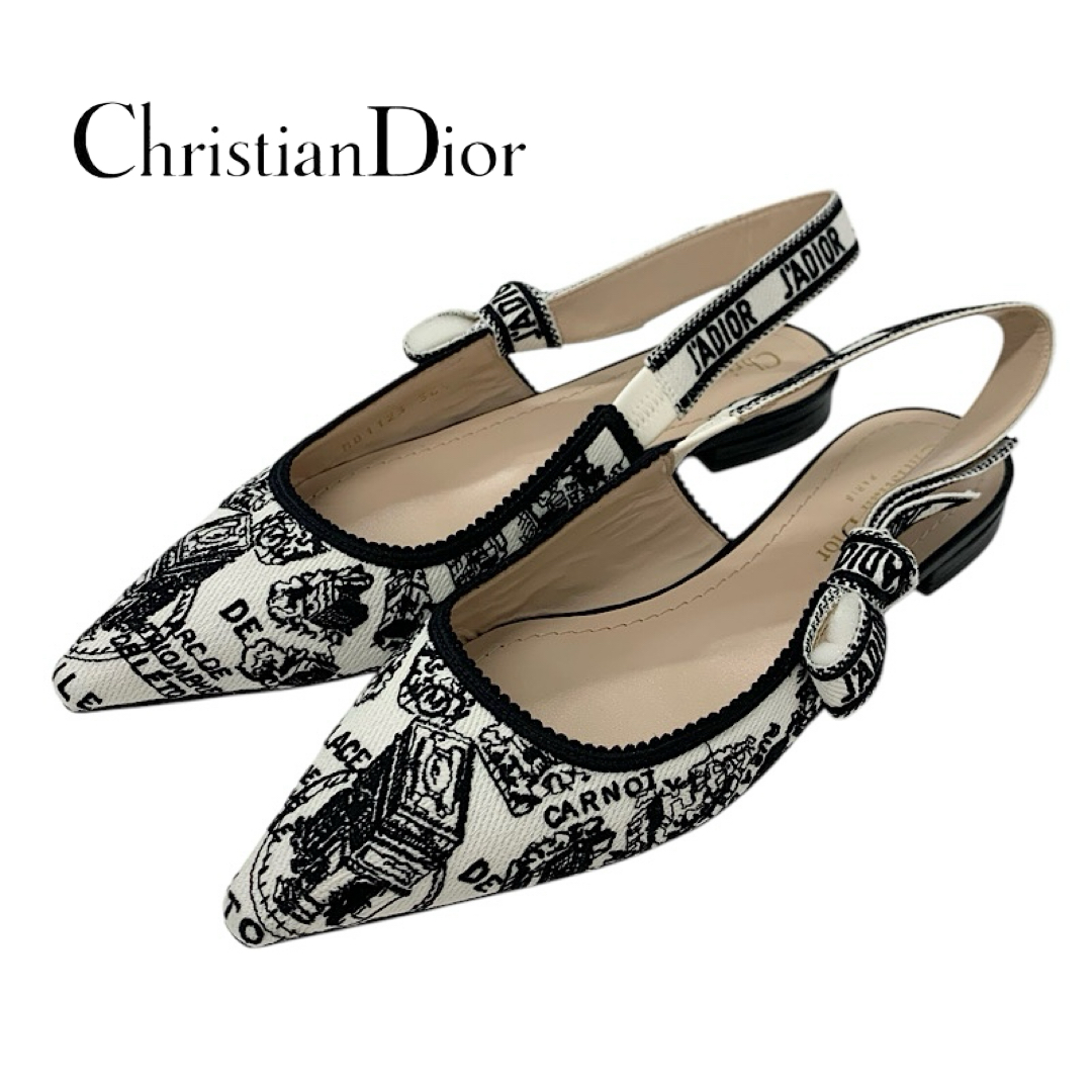 | 商品名 | クリスチャンディオール J'ADIOR ファブリック スリングバック フラットパンプス ホワイト ブラック |