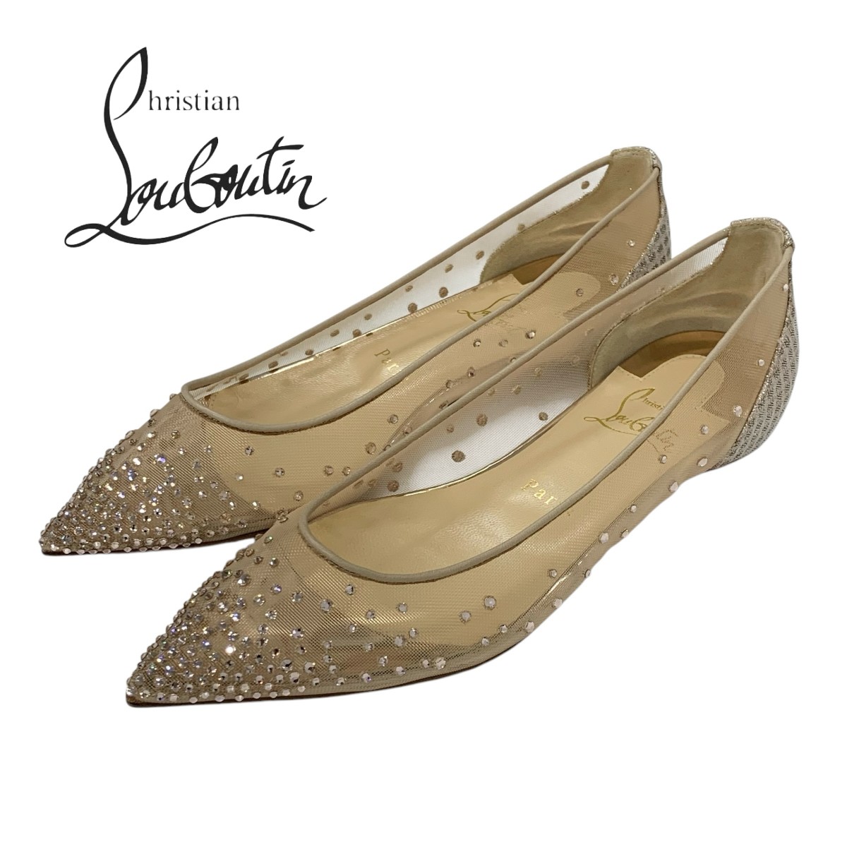 商品名 クリスチャンルブタン メッシュ スワロフスキー グリッター フラットシューズ ベージュ ピンクゴールド