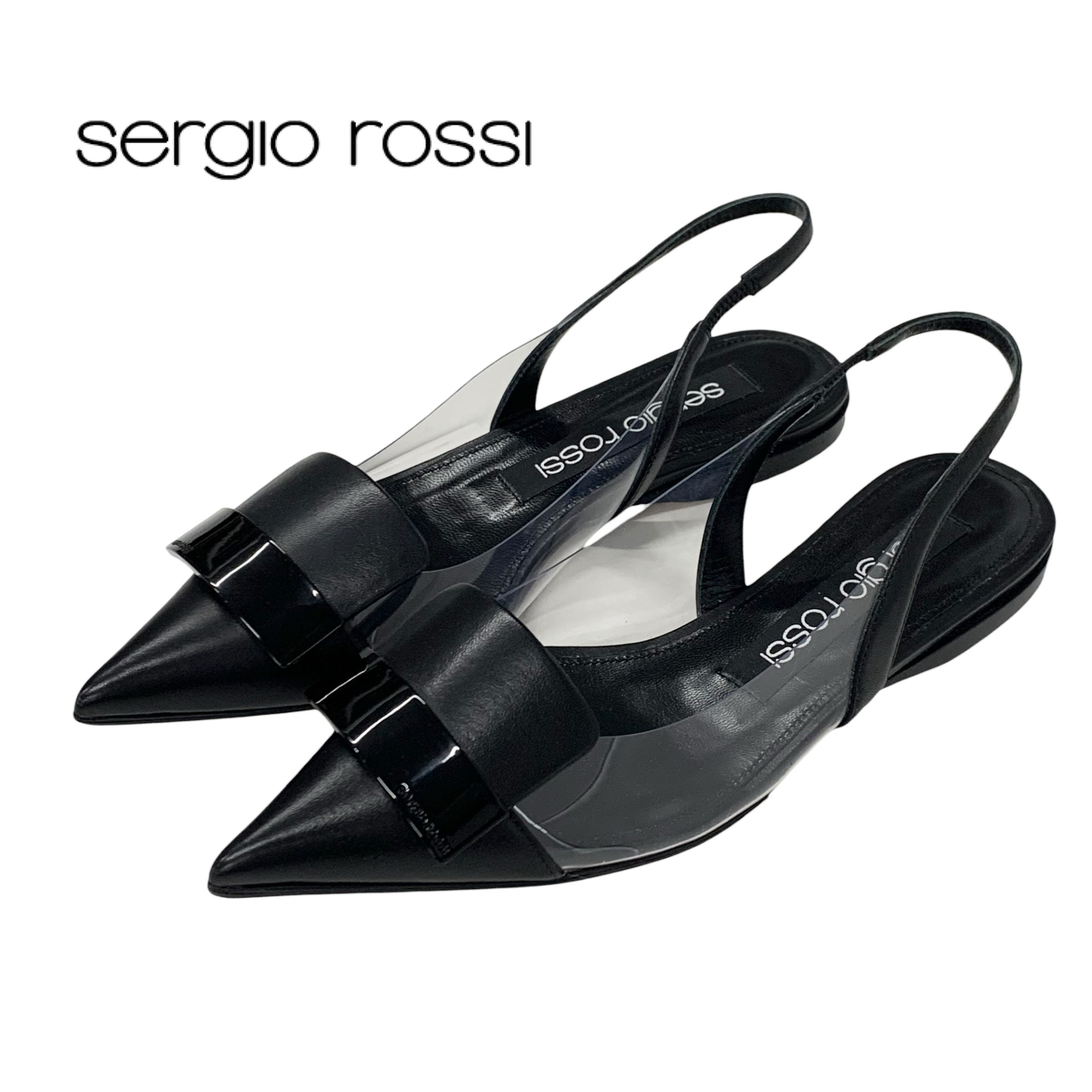 | 商品名 | セルジオロッシ SR1 PVC レザー フラットシューズ スリングバック ロゴプレート ブラック |