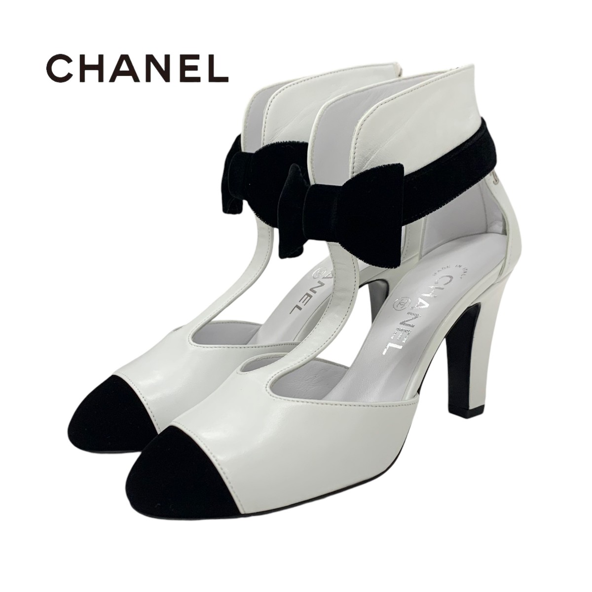 シャネル スエード ベロア ココマーク メリージェーン ストラップ パンプス ベージュ ブラックを買取しました!
