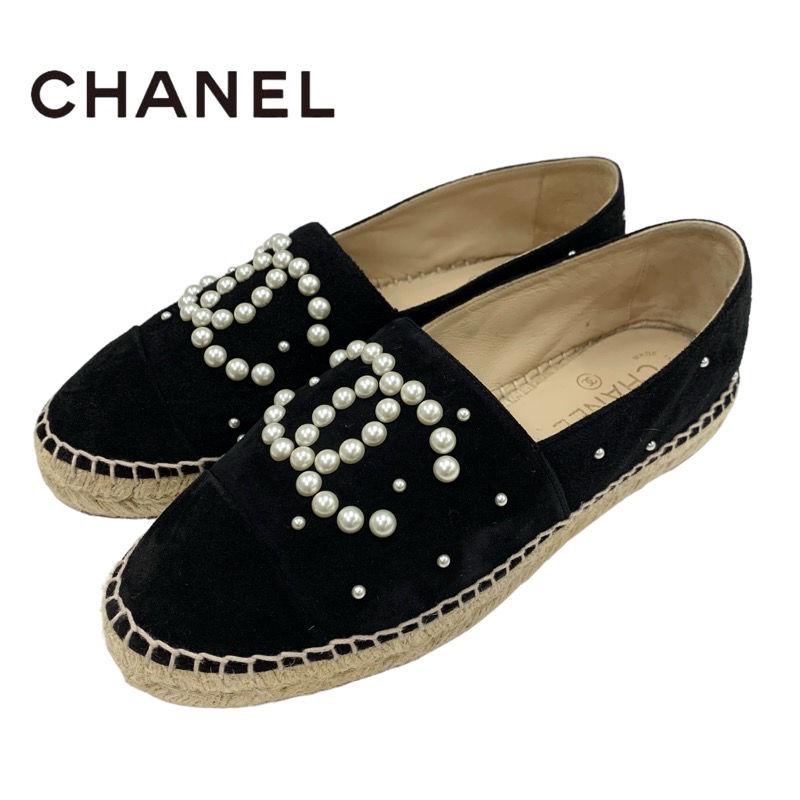 シャネル ココマーク エスパドリーユ パール フラットサンダル ブラックを買取しました!